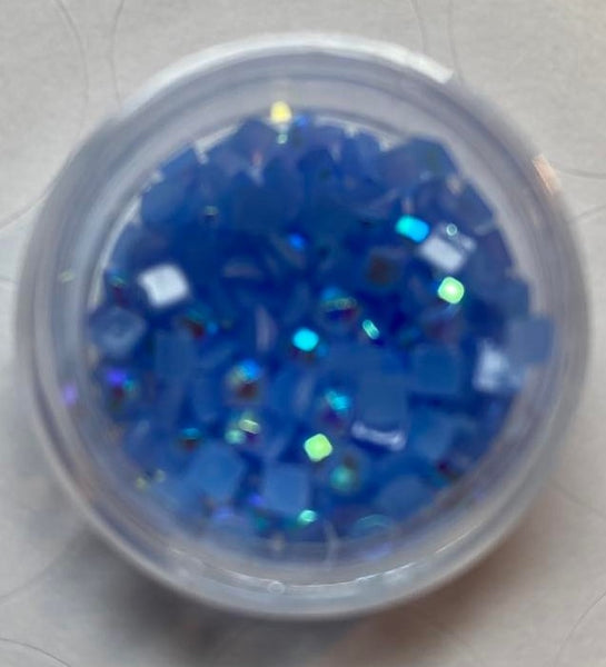 Jelly drills are a semi-transparent drill - like JELLO - with a light AB Aurora Borealis coating. The drills have DMC numbers, but the COLOR of the drills do not match normal DMCs which is why they are NAMED. The Jelly drills are brighter, some Neon, and are very fun substitutions for any drills in their color family.